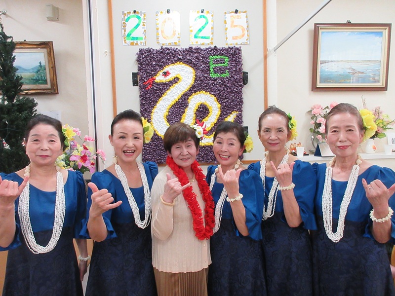 クリスマスステージにふさわしく、華やかな衣装とあふれる笑顔のフラダンス。